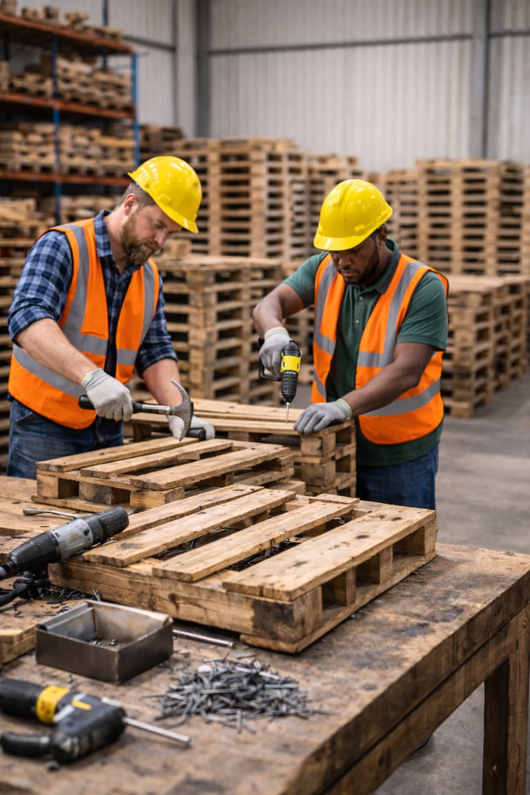 Oui. Nous réparons les palettes endommagées afin de prolonger leur durée de vie et réduire vos coûts logistiques.