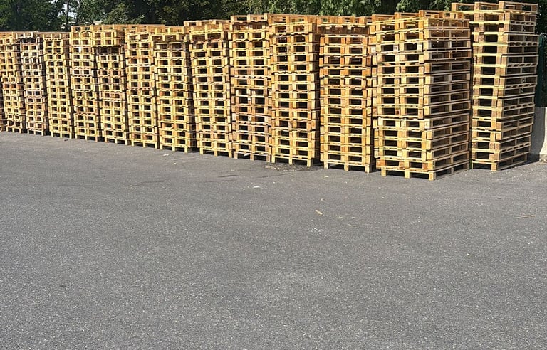 Nous proposons un service de rachat de palettes bois usagées avec enlèvement directement sur site.